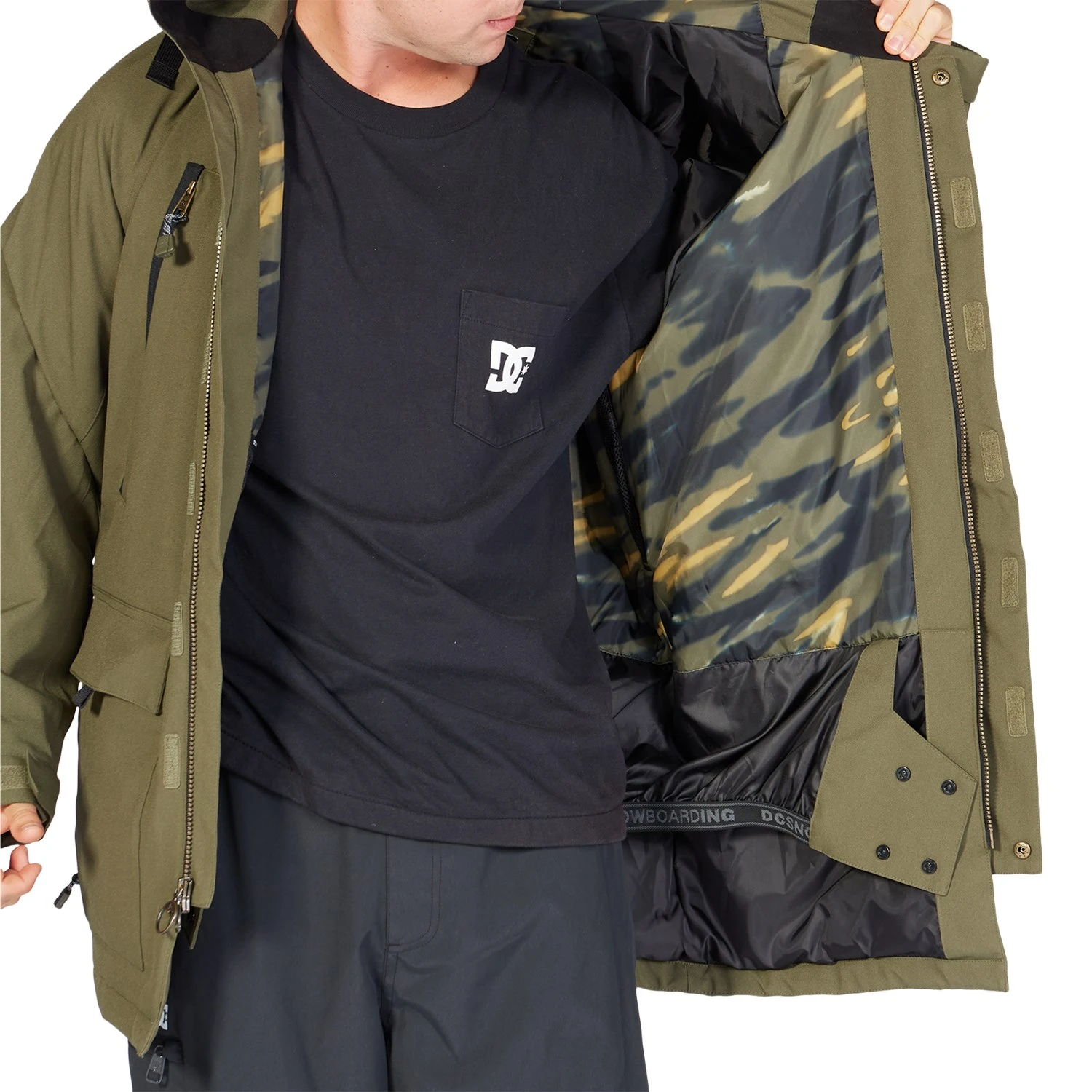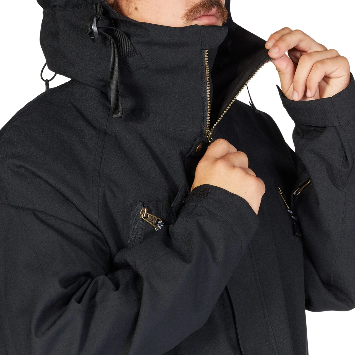 Fixed, non-removable DWR (Durable Water Repellent) coated waist gaiter.